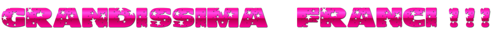 Ciao cara Lisa! Hai ragione, la nostra Franci è grande davvero!!! Allora, veniamo alle scritte. Se vuoi creare dei loghi, basta andare su un motore di ricerca e usare la parola chiave "banner generator" o "logo generator". Ce ne sono una miriade in internet. Io comunque per creare quello che vedi ho usato Cool rgb http://www.coolrgb.com Se invece vuoi creare scritte glitterate, puoi cercare, sempre attraverso il motore di ricerca che preferisci, "glitter texts" o "animated text" e così via. Prova ad esempio ad esplorare questo: http://www.commentcastle.com/ (esplora i menu laterali). Altro consiglio: vuoi delle stelle animate? o stai cercando una medaglia animata? Allora la scorciatoia più pratica consiste nell'usare le parole chiave (in inglese, of course!) e aggiungere "clipart animated" oppure "animated gif". Ad esempio: "medal animated clipart", "medal animated", "medal gif" e così via. Se, per esempio, inserisci la parola "animated stars" nella ricerca di Google immagini, scoprirai che quelle della mia pagina le ho prese proprio da lì ;) Ciao Lisa e a presto ;)